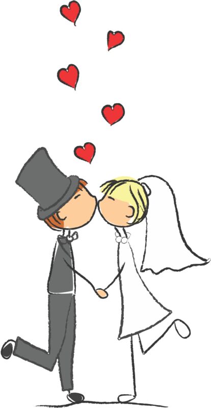 Cartoon Wedding Groom Bride Kiss 1